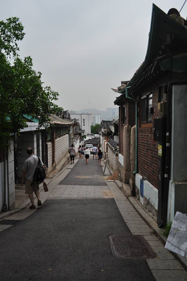 要到北村韩屋村, 坐地铁3号线安国站下, 2号口出一直向前走, 中间会看到对面马路检察院, 一直再向前过十字路口会有一个问询处, 可以到问询处拿去地图, 地图里有标注北村的八大景位置和推荐的游览路线. 北村真的很大, 我们一路走走拍拍, 在这里就花费了3个多小时了.