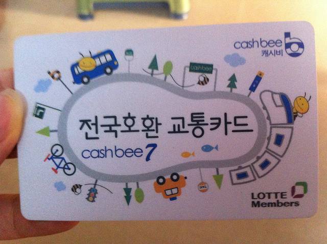 T money卡. 很可爱有木有!2500won 一张, 里面没有钱, 得另外充值, 最低充1000won,最高好像是50000won, 任君选择. 所以你永远不用担心卡里面的钱留得太多, 离开前两天看着需要充钱进去就可以. 我们离开的时候就剩600won, 一点都不浪费.