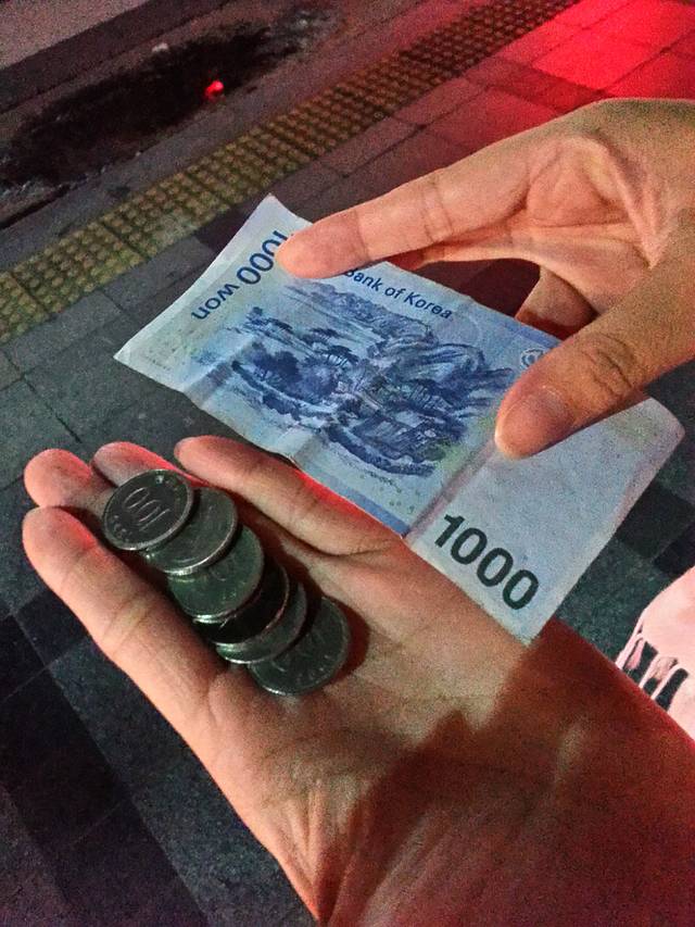 久仰了香港国际机场的大名, 机票价格比广州便宜一大半, 选择又多. 所以我们毅然决然地选择香港的航空公司, 从香港飞首尔. 由于选择的是廉航, 虽然机票是便宜了很多, 但是要自己买托运, 所以最后机票没有特别便宜. 最让我纠结的是我们的行李kg数买多了, 白白浪费掉HKD400. 从香港飞首尔来回机票含税RMB2200/人. 这个旅程计划是要从首尔飞去济州玩几天, 因此还要买韩国国内的机票. 这个机票就买得很纠结. 因为八月是济州岛的旅游高峰期, 很多机票都没了, 时间调来调去, 最终选择了在eastar航空买, 首尔济州来回含税RMB837/人. 要注意的是, 因为香港的航空公司考虑到有很多大陆居民这个消费群体, 所以大部分航空公司都有开通支付宝的支付方式. 但是外国人买韩国国内的飞机就必须要用到信用卡. 其实, 出境旅游信用卡还是很有用的. 后面还会提到.到了韩国我们大多都是用大众交通工具, 所以一到仁川机场我们就到7-11买了T money卡. 这个卡是整个韩国的交通卡, 不仅首尔可以使用, 连济州的公交同样可以使用, 普及率超级高. 用法跟中国的差不多, 可以有一定的优惠(但真的不多), 充值可以到便利店或者地铁的充值机(有中文)充值. 一个T money卡买回来要2500won, 相当于RMB15块, 但卡里没有钱, 要自己去充值. 首尔的地铁基本票价是1050won, 超过一定公里数会加100won, 以此类推, 感觉有点像出租车的计费方式.