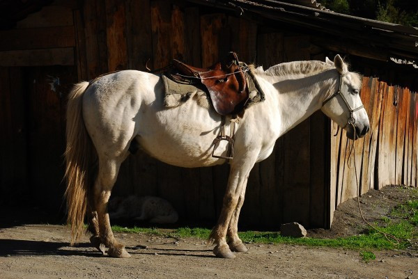 就栓在老乡家屋旁的白马,让我实在不敢尝试,但是骑白马的真的不都是王子哦。