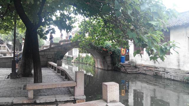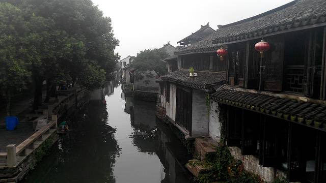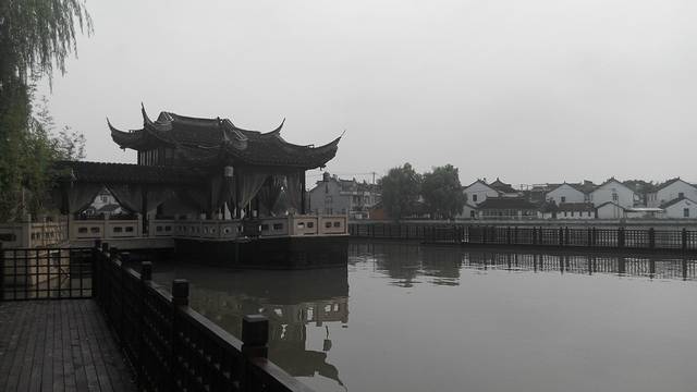 刚坐上苏州到周庄的公交车,倾盆大雨从天而降。沿途大雨如注,雨中的江南景色别有韵味。妻女担心雨大无法下车,我戏谈“等我们到了雨就会停了”。果不其然,随着汽车驶入河道、坑塘如织的水乡,雨,停了。