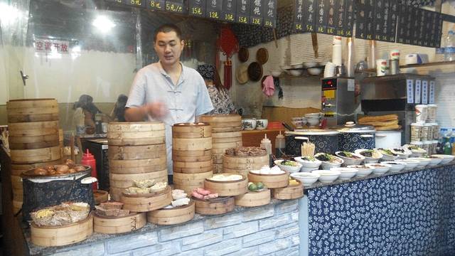 客栈50米,就是这家富有水乡特色的小吃早点。早点林林总总,你是尝不过来的。