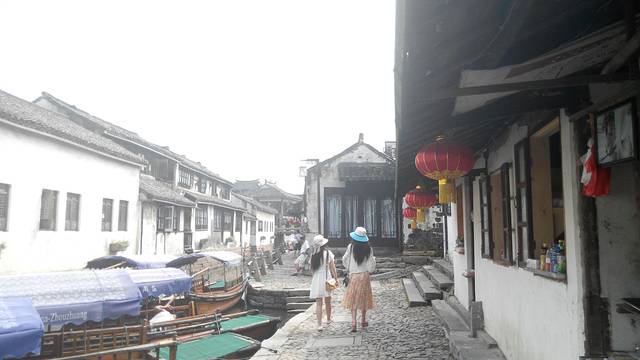 到周庄已然傍晚时分,经历暴雨洗濯的周庄空气中弥漫着雨气。河水流速很快,石板路冲刷的很干净。是在迎接我们的到来么?