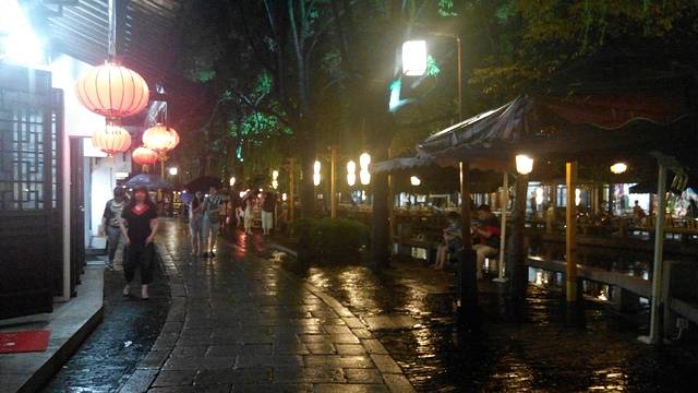 雨后夜色里的周庄,灯红酒绿,清水环绕,静谧而又温馨。