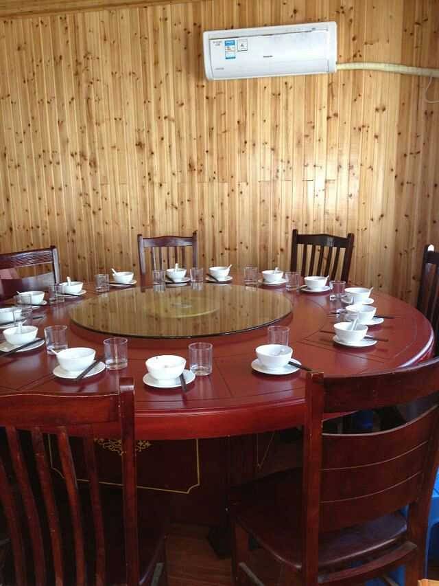 冷盘:咸鸡、咸鸭蛋、葱香莴苣、酱汁鸡胗、凉拌黄瓜、糖汁番茄,甜点南瓜粥,热菜:面托蟹、农家草鸡汤、龙虾、红烧黄鳝、河虾、红烧肉、红烧鳊鱼、白鱼、螺丝、肉塞油豆腐、丝瓜毛豆、青椒炒肉丝、丝瓜炒鸡蛋等