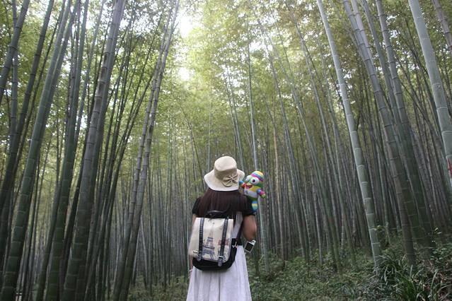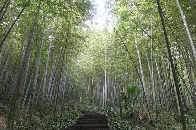 这些竹子太抢眼了,一个长的比一个高,排在道路两侧,像是在接受我的检阅呢。不愧是国家级的森林公园啊,连树的气质都与众不同呢。看看这些鲜绿的色彩,是不是如画一般呢?