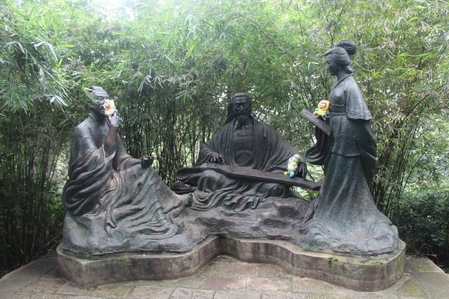按照指示牌像招隐景区走去,下了个坡没多久,就看到了三个人的雕像,他们在干嘛?一个抚琴,一个沉思,一个手握书卷,他们是谁?他们之间什么关系?在诉说着什么?可能只有历史知道了吧!我也来抢个镜,我们三个也是三剑客呢!