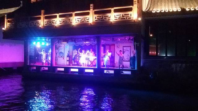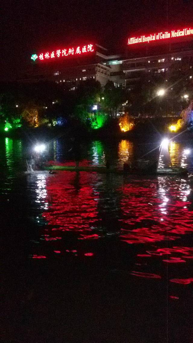 晚上到桂林坐在游船上,两岸不时有歌舞表演