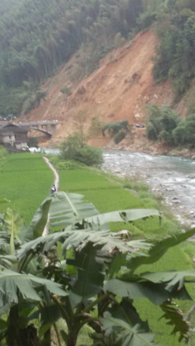 第二处塌方段,能看见把路堵住了吗