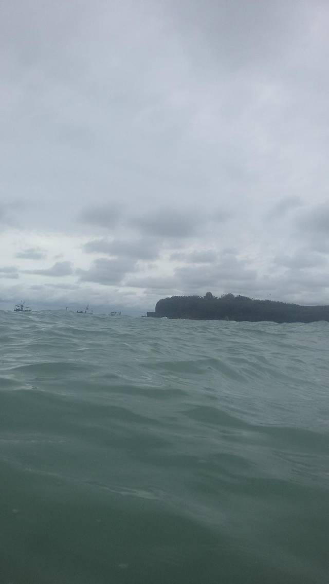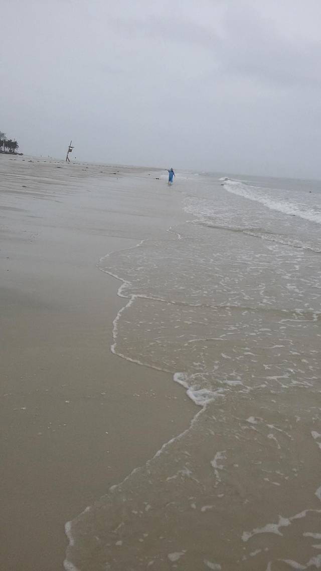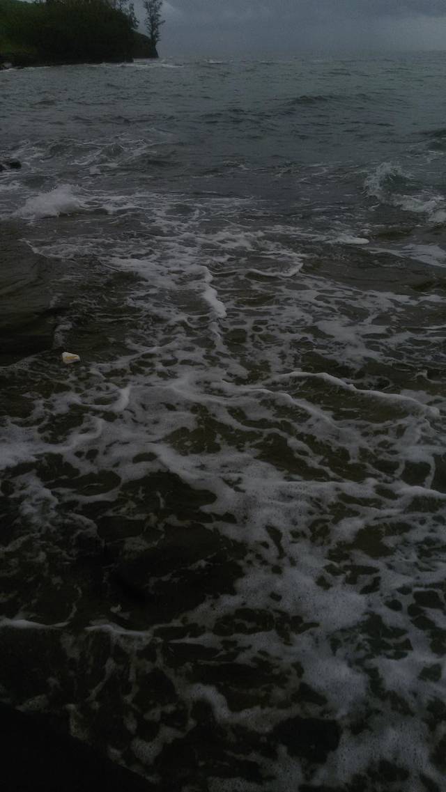 仍然在下雨,浪大,好在海水是热的,手机装在防水套里游泳时照的