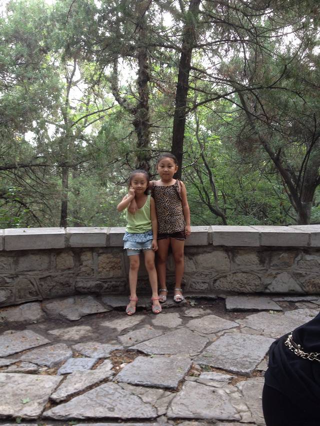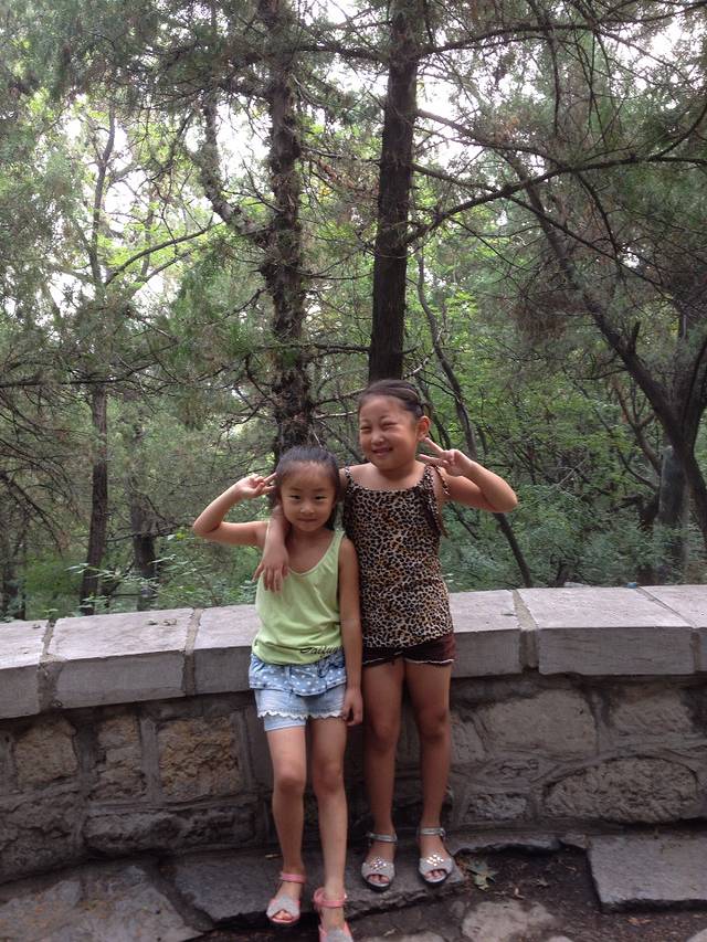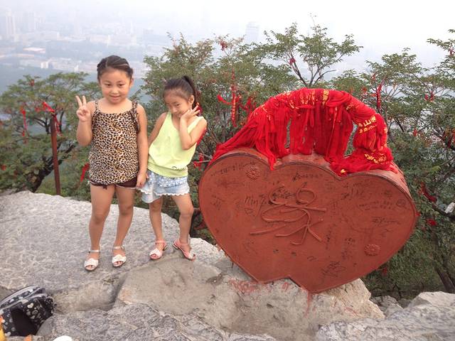 这俩妞被我忽悠了,我说,咱爬山顶上嗷两嗓子多爽,这俩妞就跟我一路爬上去了,累的一脸菜样。不过山顶上还真陡,我也有点小怕怕!