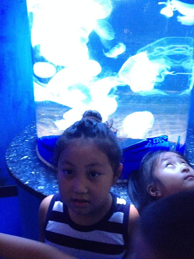 这小妞子们慌着去海底世界,一路狂奔,终于到了!看到有人在喂海豹,俩妞子兴致勃勃,跃跃欲试,买了两份小鱼,这俩妞子开始还吓得直后退,没一会儿发现海豹不会伤害她们,反而一副可怜兮兮的样子,就大着胆子上了,一人一份小鱼喂完了还要接着喂……,汗😓闺女,你那喂的不是鱼,是你妈妈的家底!