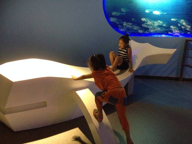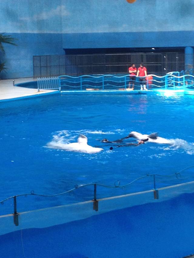 早晨五点半出发,九点左右到达.刚一进门就看到了可爱的白鲸宝宝,俩妞儿兴奋的嗷嗷直叫,好不容易培养的那点淑女气质立马飞到爪哇国去了