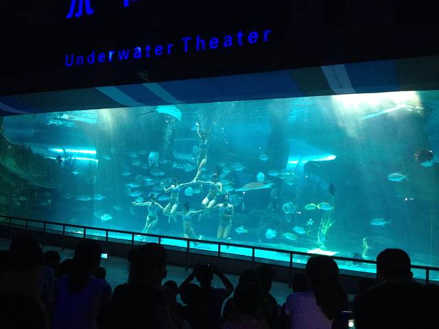 很唯美的表演!让人感叹的是姑娘们的泳技,这得受多大罪,才能做到在水下行动自如啊.向这些专业的水下舞者们致敬!俩妞子对王子和美人鱼公主比较感兴趣的说!