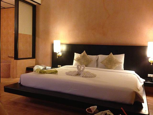 下午就坐小飞机去了普吉岛,值得一提就是住的酒店,老婆大人是这么形容的:晚上的外面就跟原始森林一样啊·~~因为蛇多,所以建在水上的独栋,都是方形的腿,打开门,什么声儿都有。嗖嗖biubiu的。对于害怕蚊虫的我,是打死也不出门。