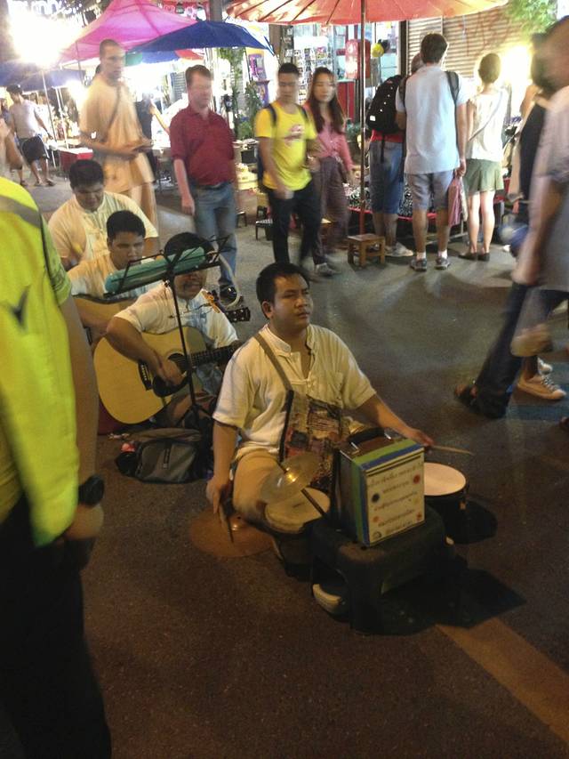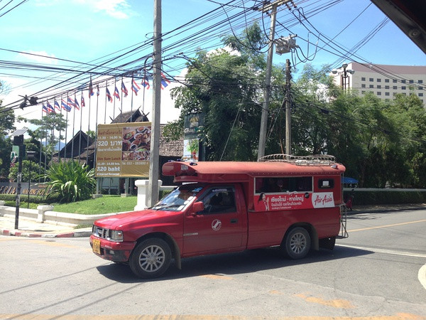 啊 对啦 有几天我们自己出去玩儿了 就做了双排车 我们每次坐 基本都是20铢 还是挺爽的