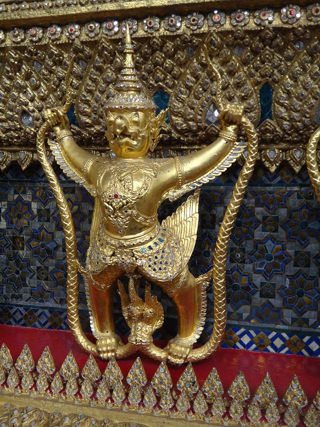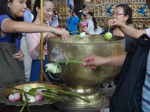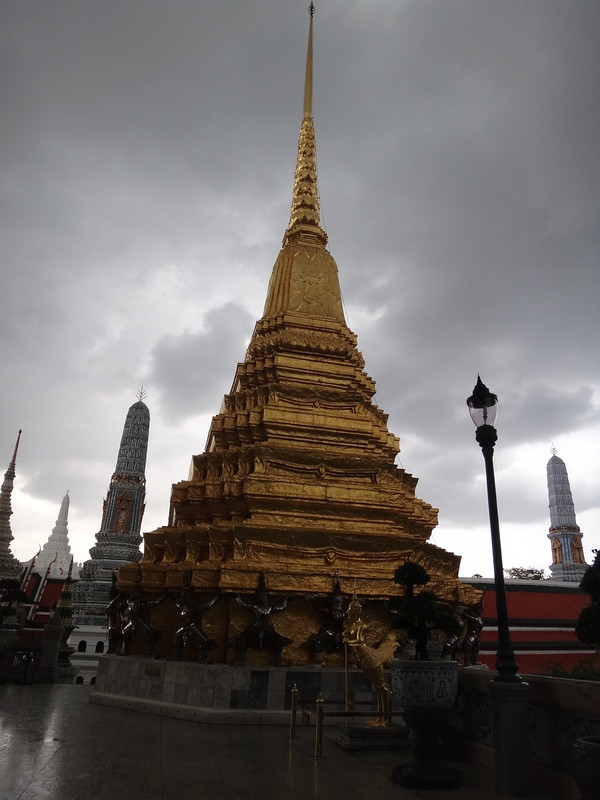 到了曼谷 第一站就是大皇宫 (在机场就要求换衣服 不能穿短裙,吊带,短裤,大皇宫外面就有长长的集市,可以买水啊,衣服啊,草帽啊,还有那种很大的布,用那个把腿裹住也可以进大皇宫,大概所有东西都在100——200铢左右)
