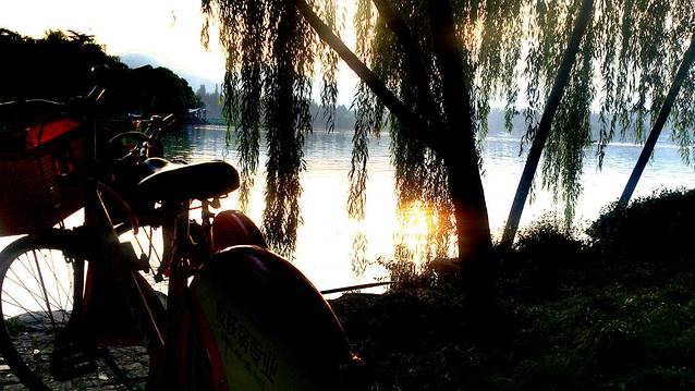 走过了就到了著名的钱塘江了,好晒观潮什么的就不说了。做直到公交回青芝坞(旅馆所在处)晚上我们租了老板的自行车夜游了西湖!!夜景好难拍大家去了留在心中就好了