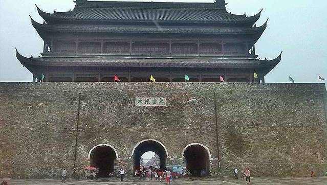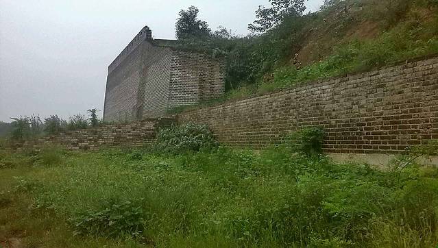 目前凤阳的老城墙残留的有西门和南门,南门为午门,其他部分城墙都拆掉了,残缺不全。我一个人抓着城墙上的杂草爬到了城墙上面,遥想600多年前的中都,怀古凭吊,心中惆怅万千。