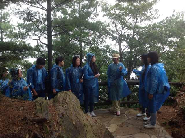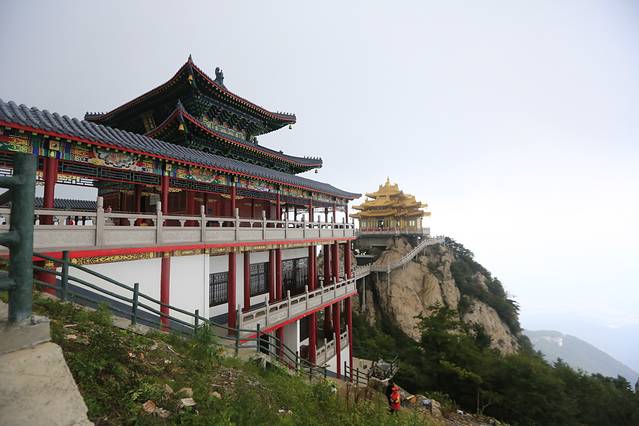 午餐用过当地特色豆腐宴后,我们乘坐大小缆车来到伏牛峰峰顶。站在峰顶的玻璃板上,望着脚下的草木,有一种直入心头的震撼。走进十里画屏,在穿云栈道上观赏山林,“老子传经”等形象的石像都美不胜收。沿着小路走上金顶,玉皇顶,去感受道家文化,去俯视栾川全景,即使在阴雨中依旧让人难以忘怀。