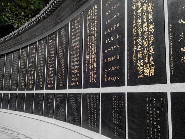 铜像后的书法长廊,或刚劲有力,或清秀工整,短短前言的道德经耐人寻味。