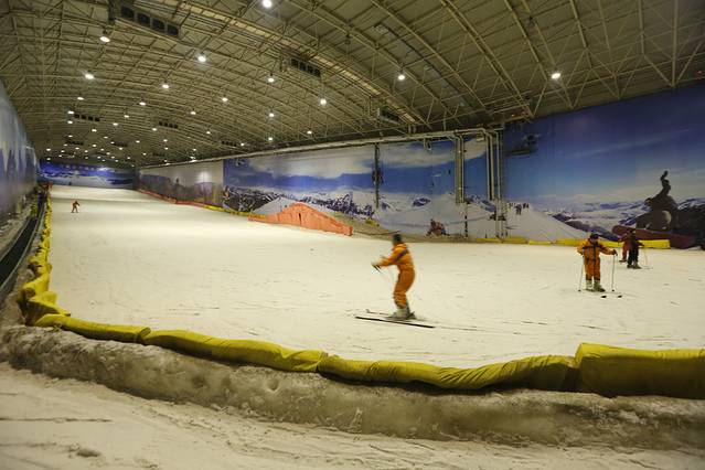 室内滑雪场,总建筑面积1.5万平方米,室内滑雪面积8000平方米,是中国中西部地区唯一的一处四季滑雪场。