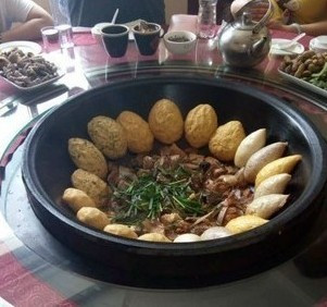 这是鱼锅饼子,据说在蓬莱不吃这个,就如同去东北不吃猪肉炖粉条、小鸡炖蘑菇。饼是现糊上去的,下面的铬渣超级好吃!里面有十几种鱼,9月份正好开海,很新鲜。加上点的其他小菜,人均80元可以吃的非常好。