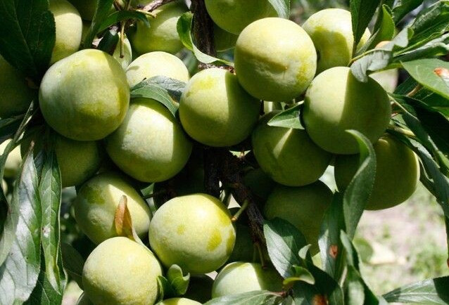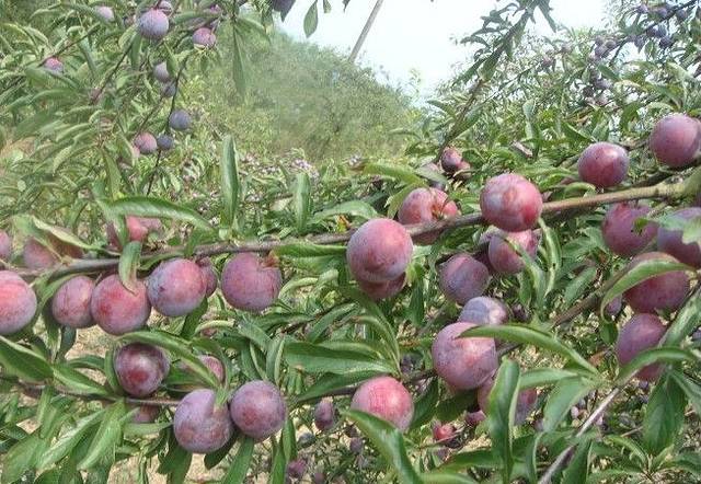 紫红的玫瑰李挂在树枝上,仔细看枝干都是紫红色的!