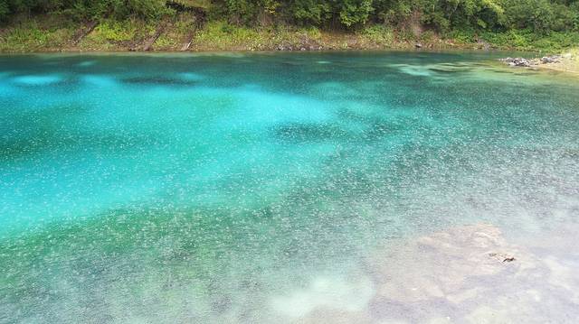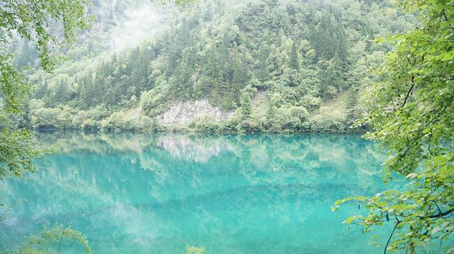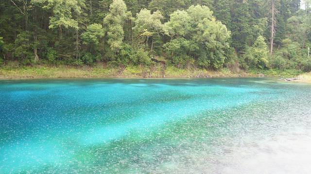 走到五花海,雨还在下,虽然有点可惜没有看到5种颜色,但雨中的池子波光粼粼别有一番味道。