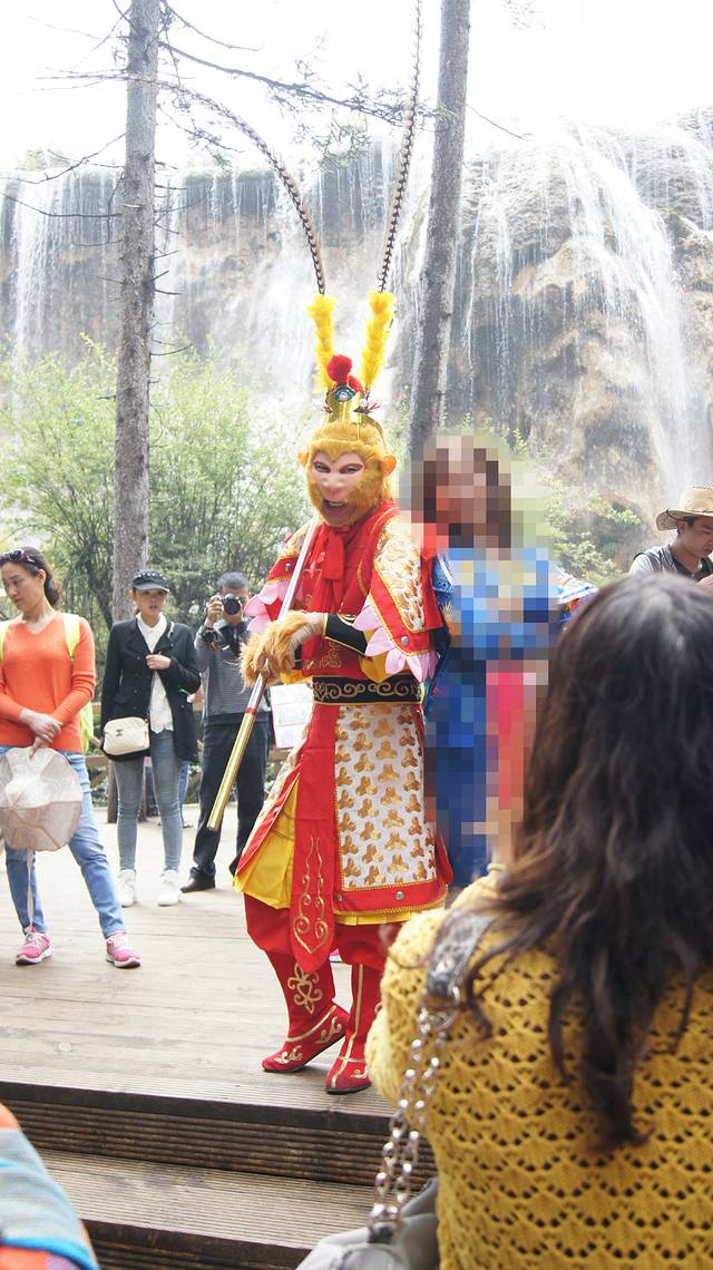 九寨沟是老版西游记的取景地之一,景区还特地安排了一猴哥来和游客拍照