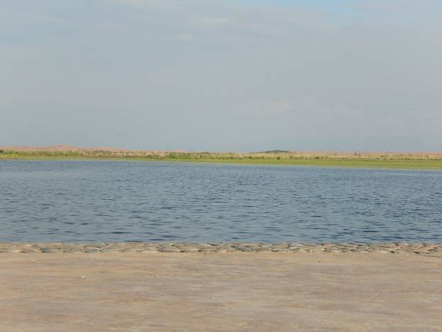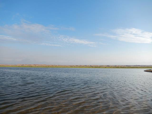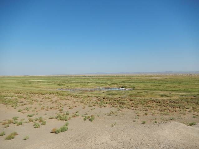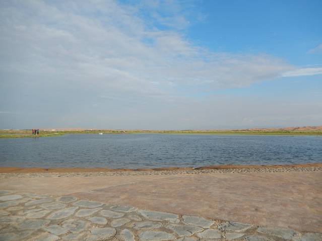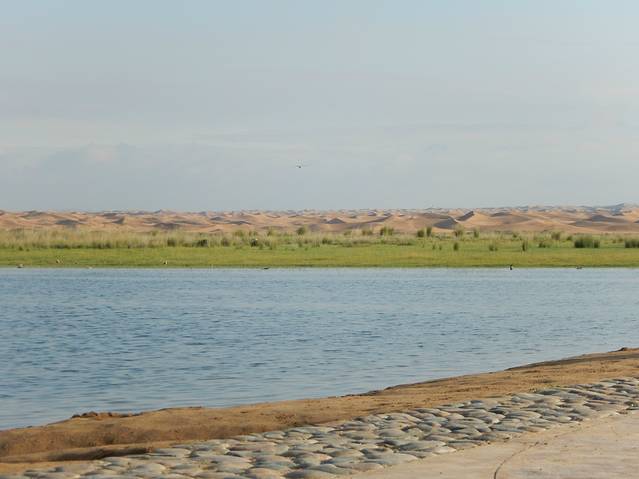 远处的沙漠和草原湖水的结合。。。超美真的。。。