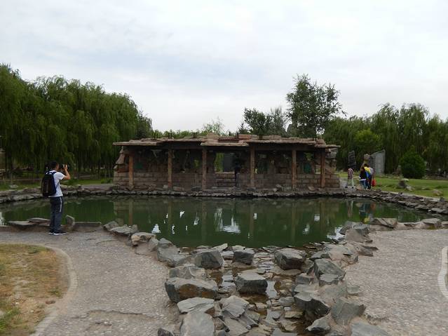 12点多结束了在西夏王陵的游览,我们往乘坐电瓶车的地方走时,因为排队的人太多,我们俩决定走着回去。