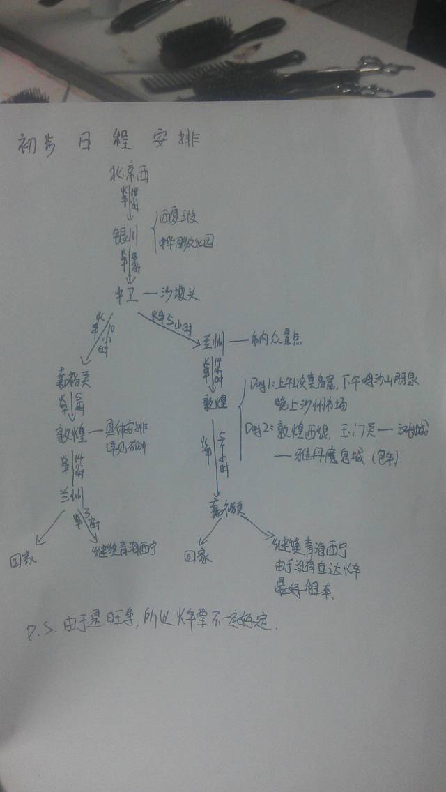 这是我们在讨论行程时做的初步计划,最后经过一番激烈的讨论,选择了右边的路线(忽略楼主的字儿)