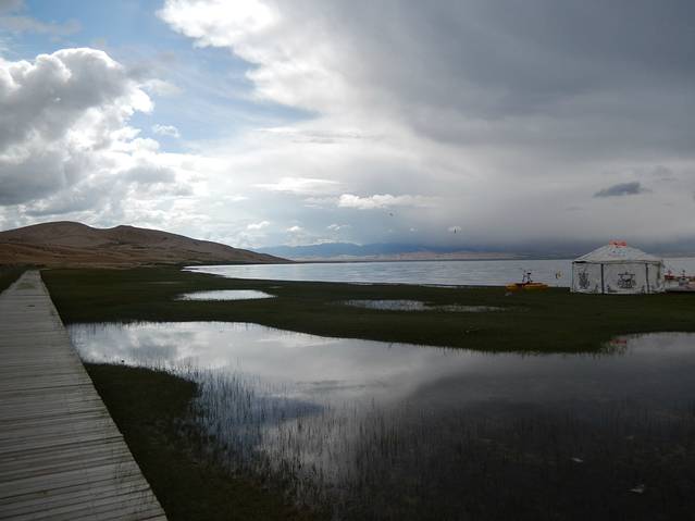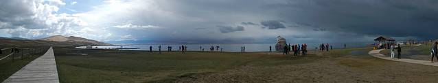离开了倒淌河,我们终于见到了美丽的青海湖,虽然天空还有点乌云,但是仍盖不住它的美丽。。。