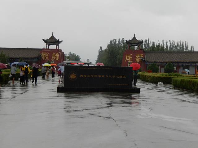 西夏王陵景区大门,雨下的有点大。