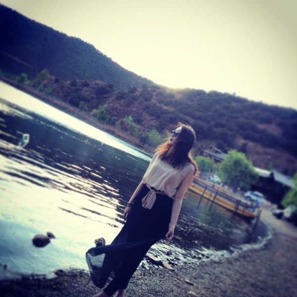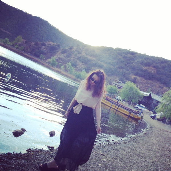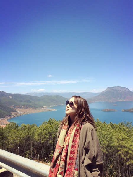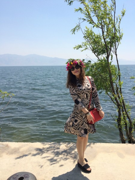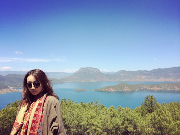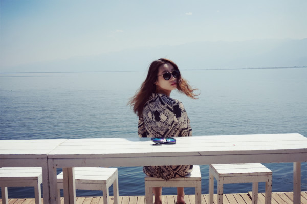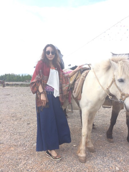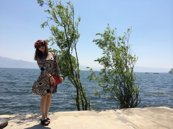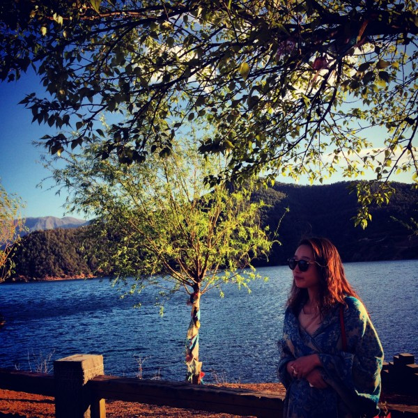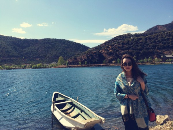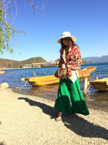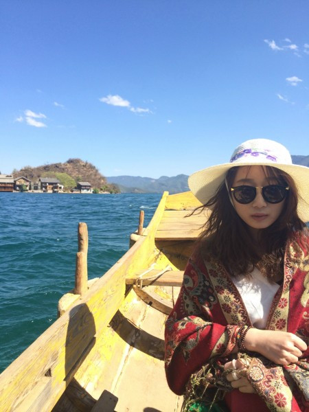 要去划船,实在是怕晒黑,于是穿了全副武装的衣服。其实在泸沽湖已经不适合穿这种衣服了,民族风还是留给丽江吧!