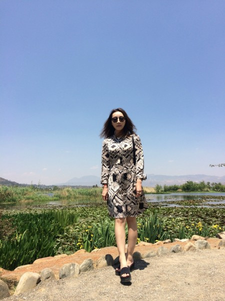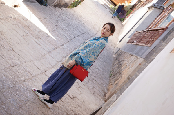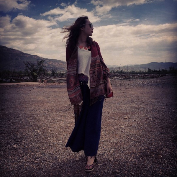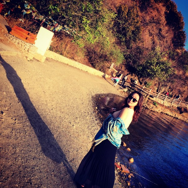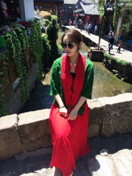 裙子里面还穿了秋裤,我觉得云南的天气就是,有太阳时很热,没太阳时很冷,风是凉的。