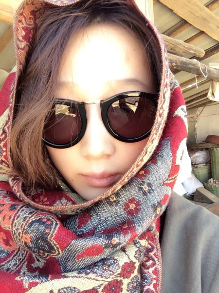 我早上起来没有洗脸,没擦防晒,于是在路上就是这个状态。所有人都下车拍照的时候,我也闷在车上不出来,看起来好不合群的样子。