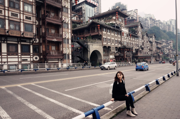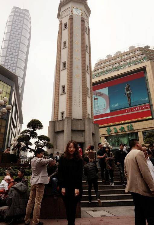 身后就是洪崖洞,我当时已经累瘫了。只要可以坐下,我就毫不犹豫的就坐下去。毫无形象可言。