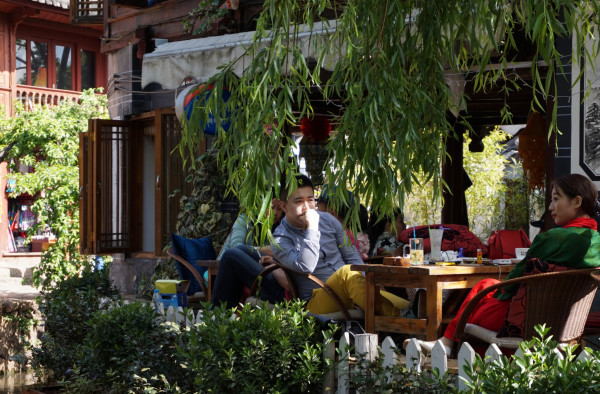 束河古镇,坐着发呆,听对面小酒馆里的老板在唱歌。