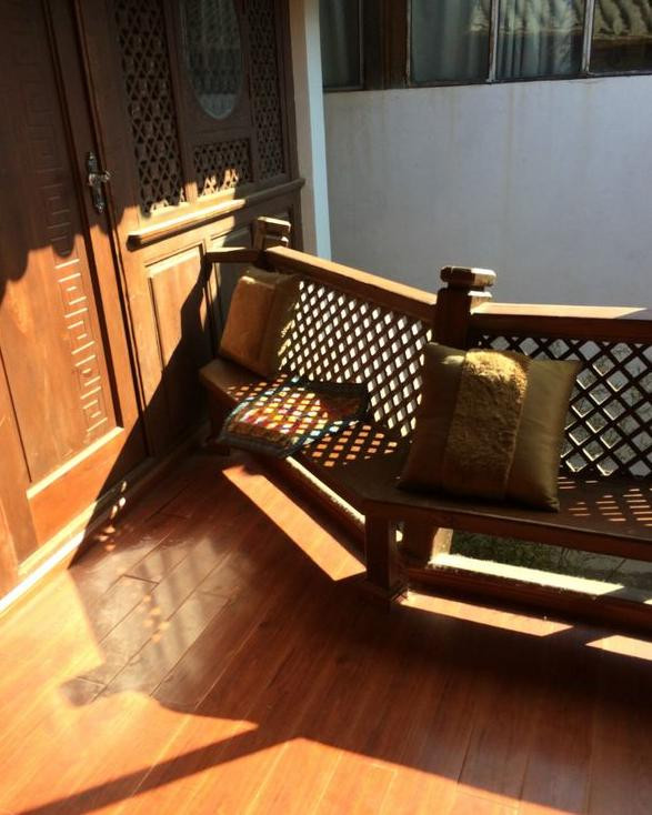 前一天睡的实在是太晚了,小伙伴们很晚才起,我是因为换床,一晚上大概只睡了3个小时左右。早上很早就起来坐在客栈2楼的小阳台发呆。