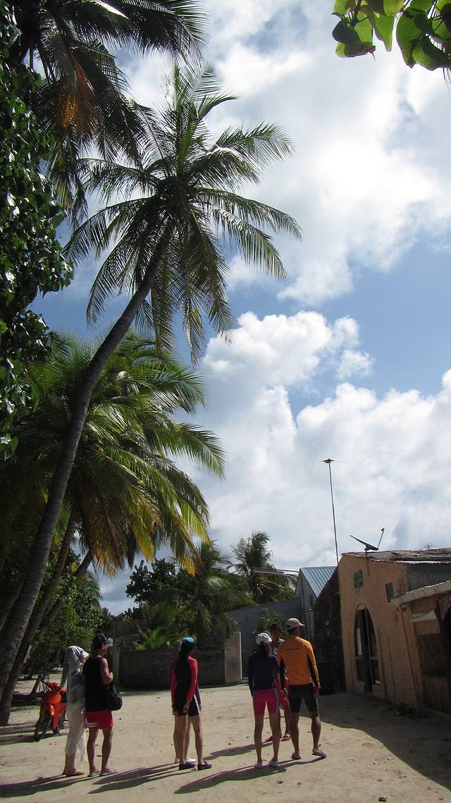 浮潜开始前,教练带我们到了当地人居住的小岛了解民俗风情。那儿的海边椰树可以自然地低垂到海岸上。当时很想过去拍照,可走过去一看岸边儿满是生活垃圾,只好遗憾作罢