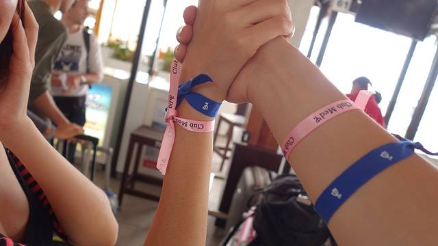 酒店接机人员给我们寄上了身份识别绑带,上岛后才发现带子的颜色因房屋类别而各不相同。