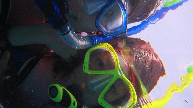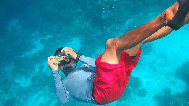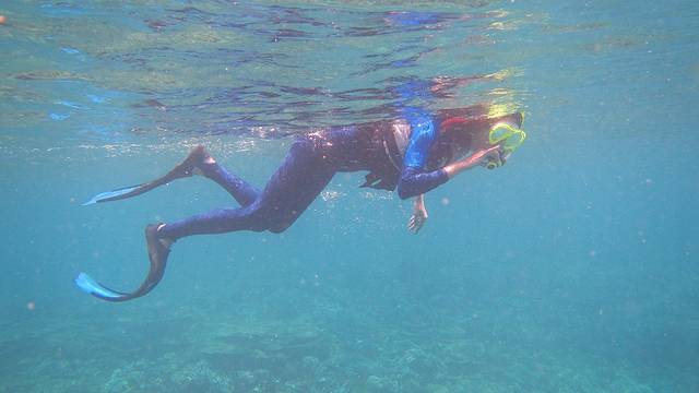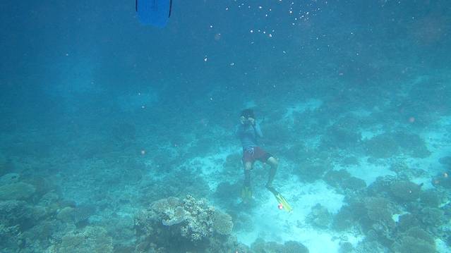 我们的浮潜教练,他不必像我们一样穿救生衣,可以潜到水下4、5米!