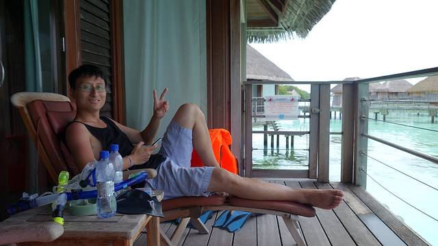 我从北京飞新加坡找他前,他一直不告诉我我们的蜜月在哪儿度过,若不是在机场换登机牌,工作人员看我是新加坡旅游签,要求看到我离开新加坡的航班信息,我铁定没法从他那儿获得一点儿消息,肯定的。这个小傻瓜~但的确,马尔代夫给了我大大的惊喜!在我们5晚6天的行程里,所有的都那么美好!
