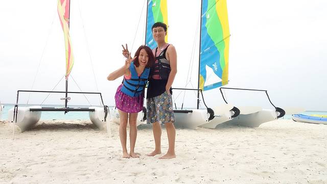 岛上第三天和第四天,天有些阴,这让我有种拍照不会被晒黑的错觉。提前约好的蜜月照就在第四天的下午,早早地,心情就很激动。上午就很嗨地在海边先拍了几张小疯照,还划了独木舟,坐了帆船