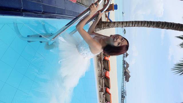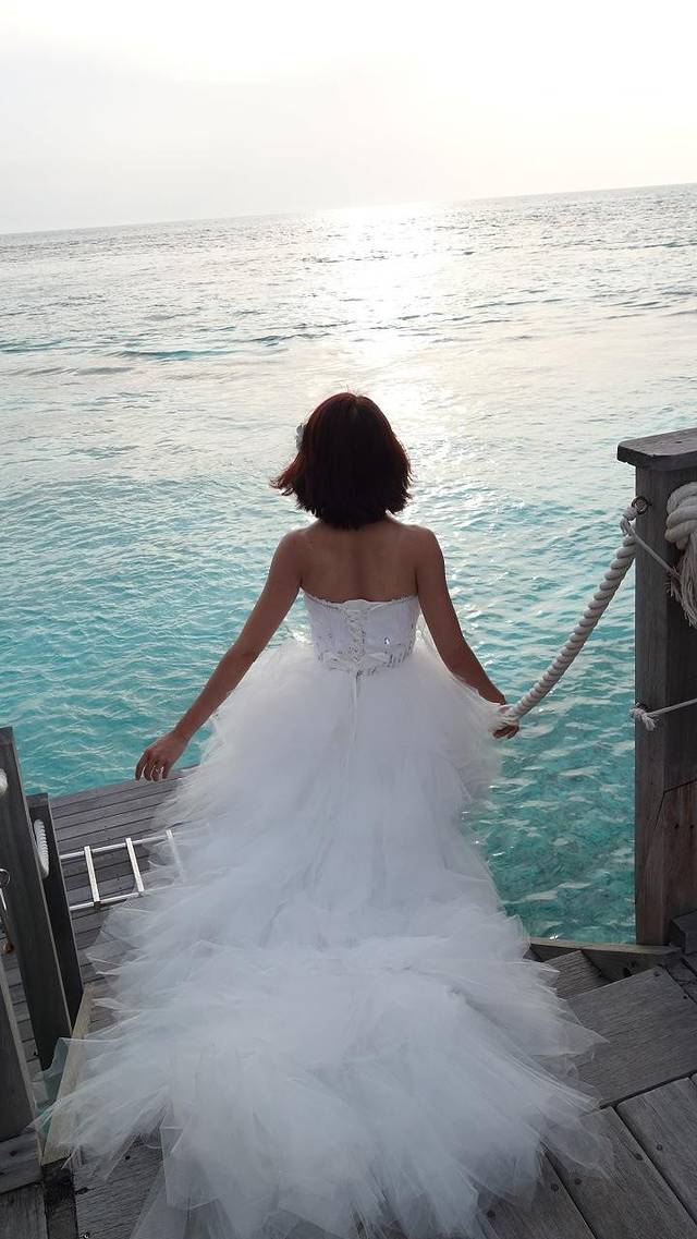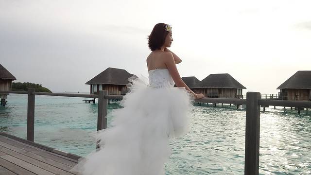 第五天:拍照拍照!在马代我们几乎没有睡过懒觉,每天早上我都会拉帘看看窗外是否有阳光。在第五天的早上,见天气依旧不错,于是抱着婚纱完成昨天没拍的几个场景。