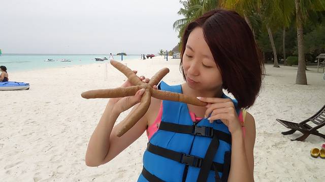 等候帆船的时候,帆船教练从海中拾回来一个海星。我第一次摸海星,真是很好奇他那硬邦邦的身体是如何伸缩、运动的。