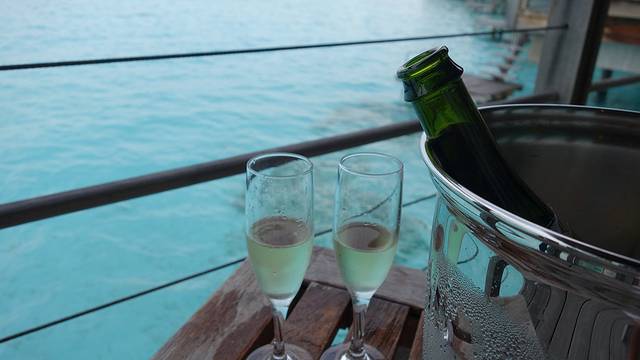 第二天就压离岛了,开了香槟庆祝我们的蜜月。香槟的味道很甜,生活也是浸在蜜糖里的哟~