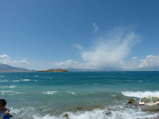 赛里木湖,蓝蓝的天,碧绿的海。